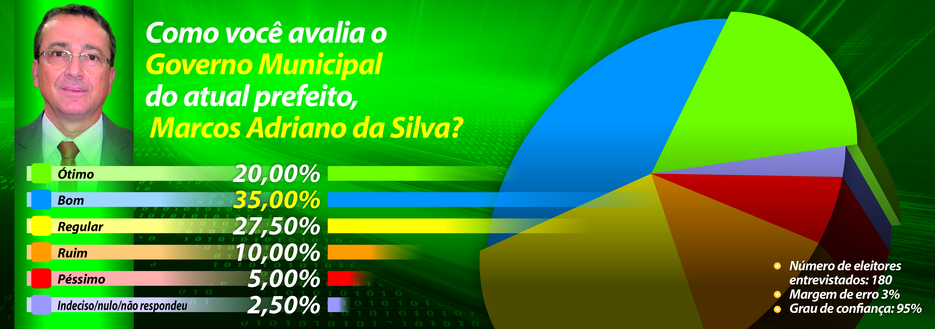 O s eleitores de Pedranópolis (sede) e dos distritos de Santa Isabel e Dulcelina, em sua maioria (55%) consideram a atual administração do prefeito Marcos Adriano da Silva (PTB) e do vice-prefeito Aparecido Donizete Tanganelli, o popular Cidinho (PP), como aprovada. O índice resulta de 20% de atribuições ‘ótimas’ e de 35% de ‘bom’. Classificam a atual gestão como ‘regular’ 27,50% dos entrevistados e reprovam-na 15% (10% de ‘ruim’ e 5% de ‘péssima’). Os dados foram extraídos de pesquisa de opinião pública realizada no último dia 04, mediante a oitiva de 128 eleitores residentes no município (sede, Santa Isabel e Dulcelina). Comparativamente a dados de levantamento similar de dezembro de 2020, tem-se uma progressão dos índices, pois naquela oportunidade, Marquinhos foi refutado por 51% dos entrevistados e aprovado por 28%.