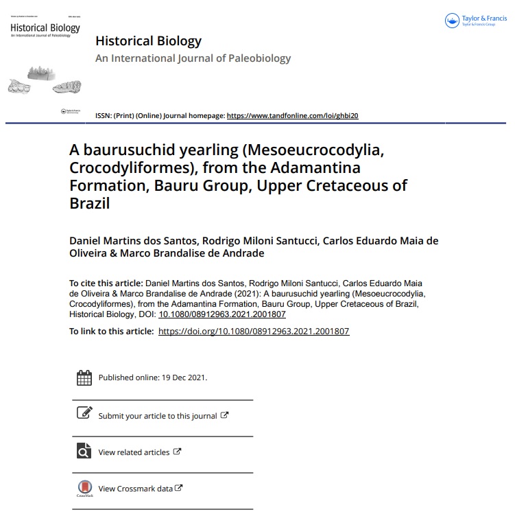 O título da publicação é “Um baurusuchid com um ano (Mesoeucrocodylia, Crocodyliformes), da Formação Adamantina, Grupo Bauru, Cretáceo Superior do Brasil”; no original, em inglês: “A baurusuchid yearling (Mesoeucrocodylia, Crocodyliformes), from the Adamantina Formation, Bauru Group, Upper Cretaceous of Brazil”.