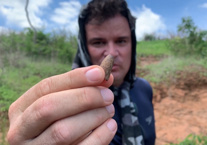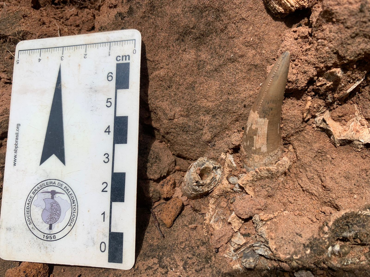 “Isso indica que, possivelmente, tem um crânio dentro do bloco rochoso ou talvez grande parte do esqueleto. Pelo tipo de dente, é um Baurussuquideos que viveu por aqui há 80 milhões de anos”, cravou.