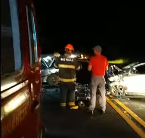 Três veículos se envolveram no acidente, sendo que dois colidiram de frente e o terceiro foi atingido de raspão.