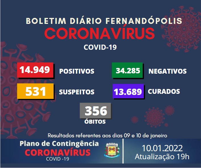 O Boletim Epidemiológico desta segunda-feira, 10, registrou mais 156 casos positivos para Covid-19 em Fernandópolis. O número de infectados chegou a 14.949, sendo que no momento, 904 casos estão ativos no município.