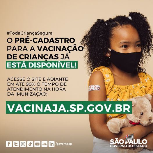 O pré-cadastro é opcional, não é um agendamento, mas agiliza o atendimento nos locais de imunização, evitando filas e aglomerações. Para cadastrar os filhos, os pais ou responsáveis devem acessar o link www.vacinaja.sp.gov.br, clicar no botão “Crianças até 11 anos” e preencher o formulário online.
