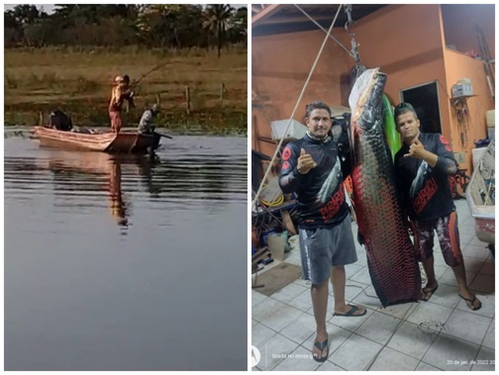Jovem que fisgou pirarucu de 117 quilos demorou uma hora e meia para tirar peixe da água