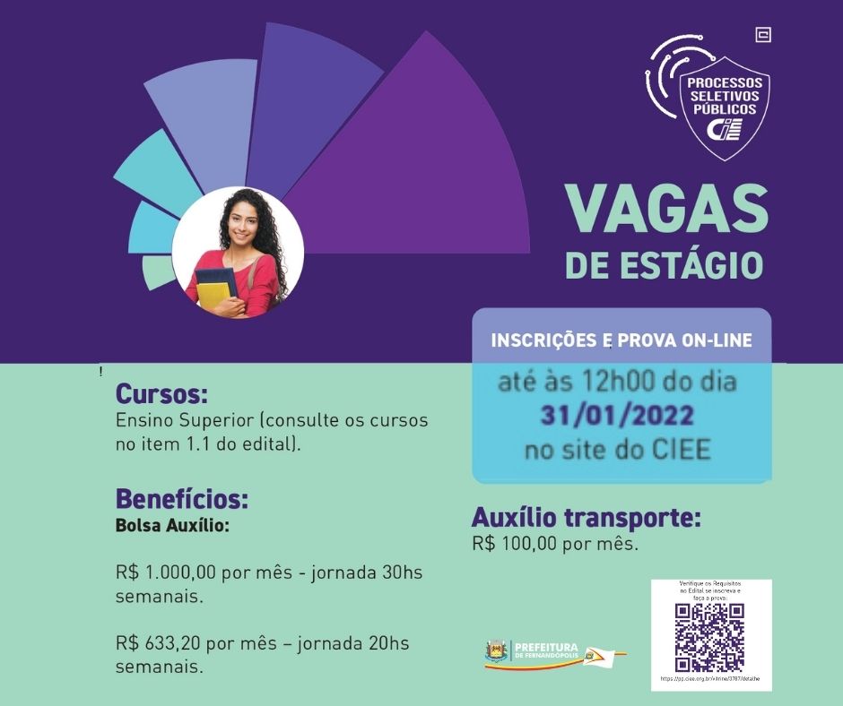 As pessoas que ainda não tiveram oportunidade de efetuar a inscrição para o processo seletivo de estagiários da Prefeitura de Fernandópolis ganham um prazo a mais. O período foi prorrogado e as inscrições e prova on-line terminam às 12h do dia 31 se janeiro.