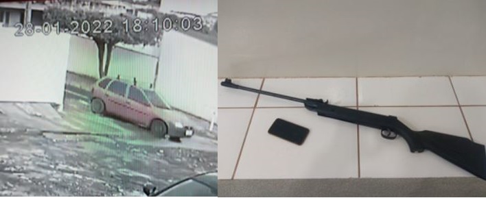 O suspeito foi reconhecido por testemunhas e também pela vítima, além de terem sido recuperados os objetos roubados. Uma espingarda de pressão e um celular também foram apreendidos.