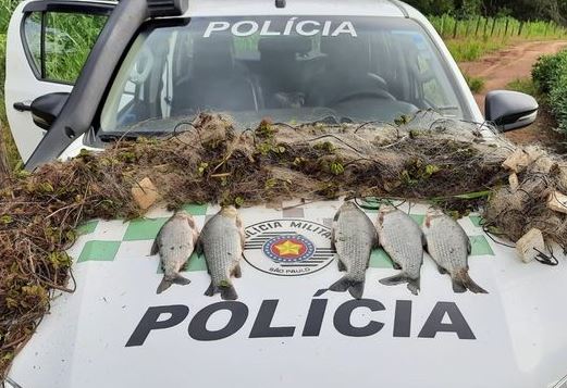 Durante policiamento na área rural do município de Votuporanga, Policiais Militares do 4º Batalhão de Polícia Ambiental avistaram 3 indivíduos que estavam realizando pesca em uma lagoa marginal do rio São José dos Dourados, utilizando para isso uma rede.