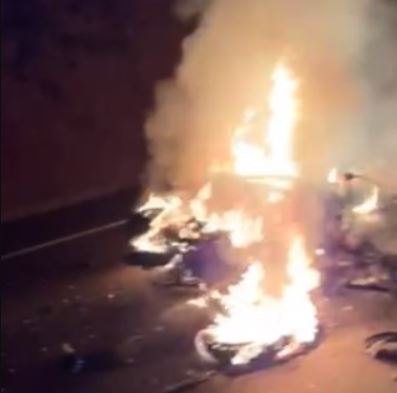 Após a colisão, as motocicletas pegaram fogo - Foto: Reprodução