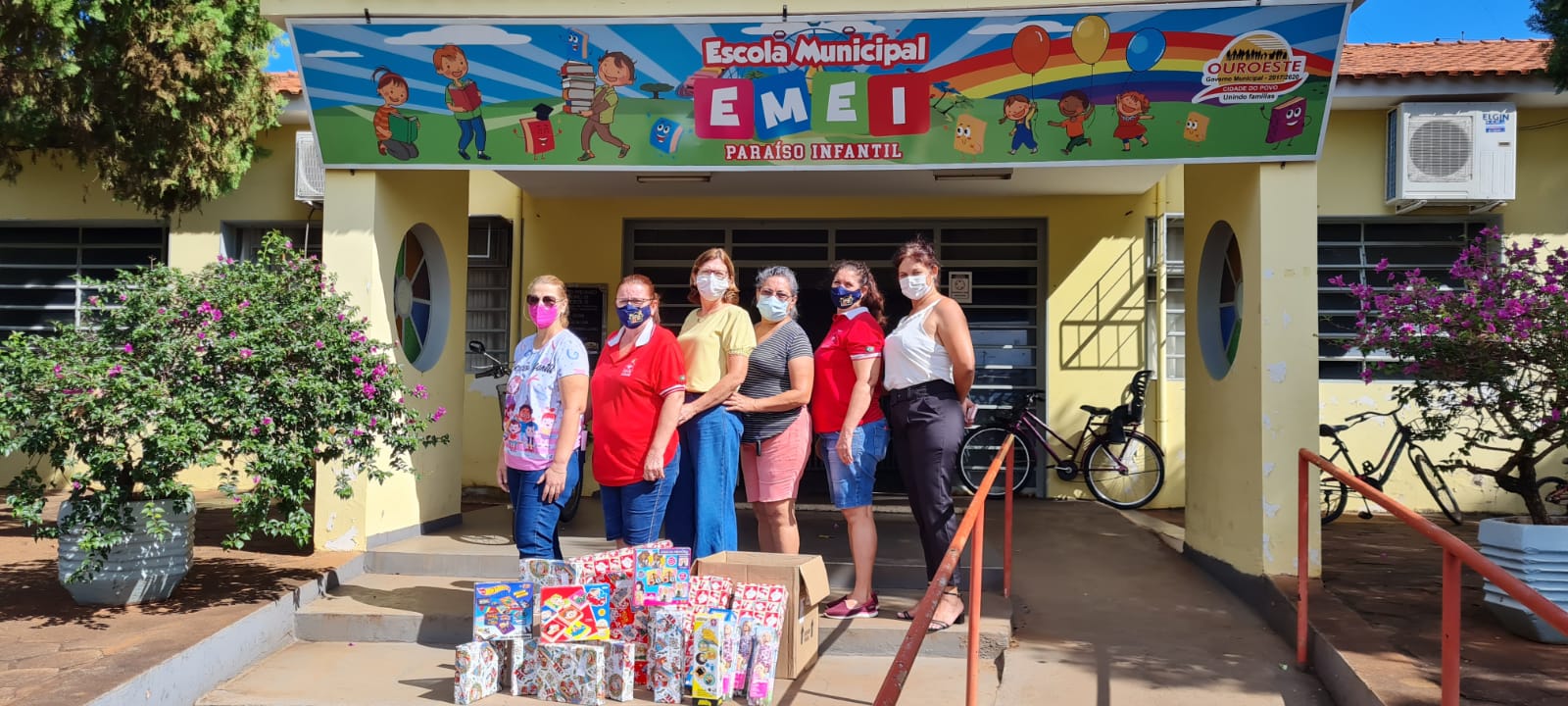 As escolas municipais de Ouroeste e Arabá foram contempladas, na quinta-feira, dia 10, com diversos brinquedos, através da doação da Casa da Amizade de Ouroeste, entidade social vinculada ao Rotary Club, que por sua vez havia recebido os brinquedos da Usina Bunge.