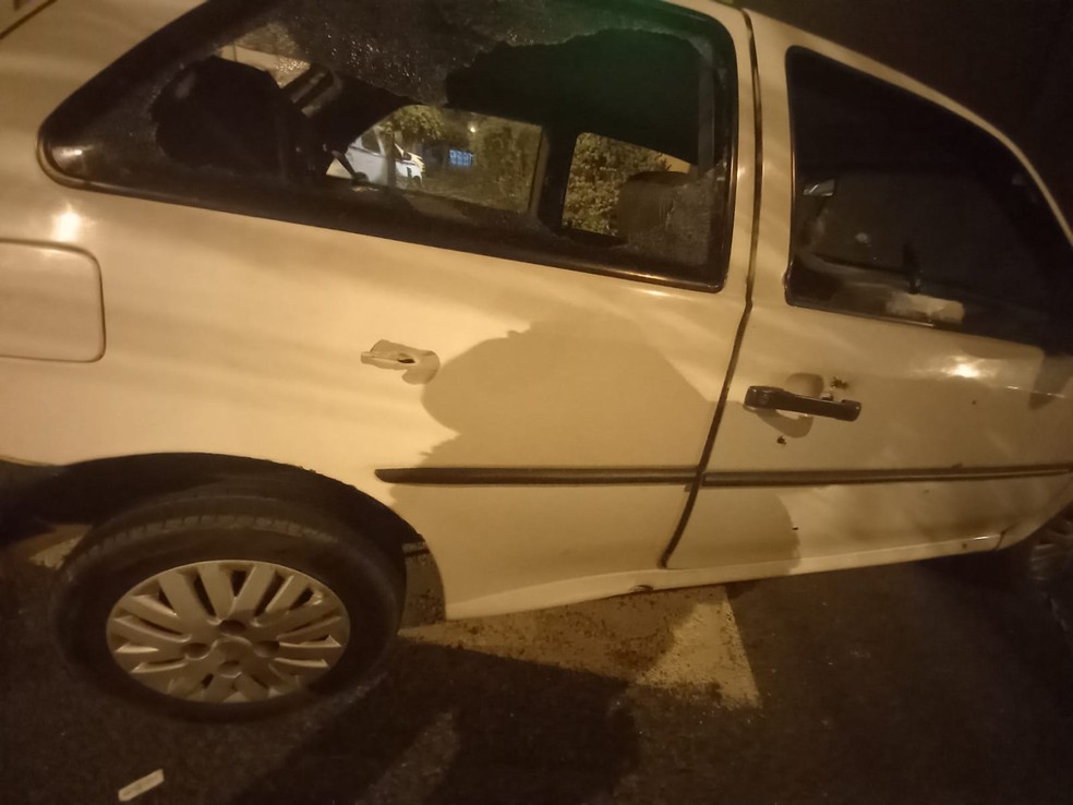 Marcas de bala na lateral do VW/Gol. Foto: Divulgação/Polícia Militar SP