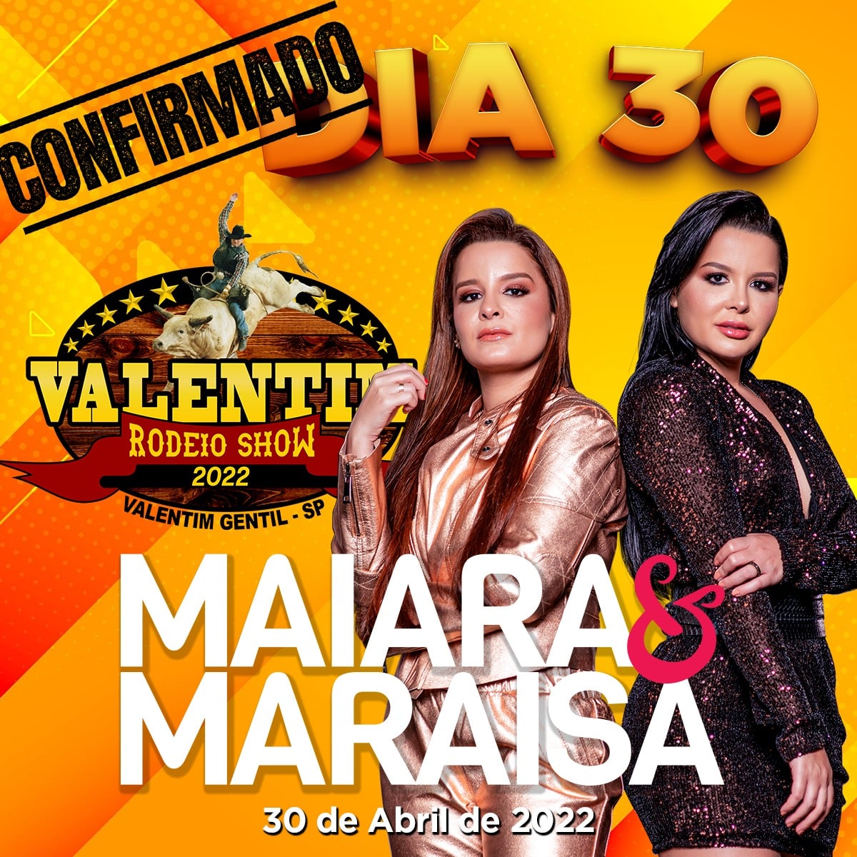 Nesta quinta-feira, 3, a organização do evento divulgou a dupla Maiara & Maraisa, como a última atração do Valentim Rodeio Show, que acontecerá entre os dias 27 e 30 de abril.