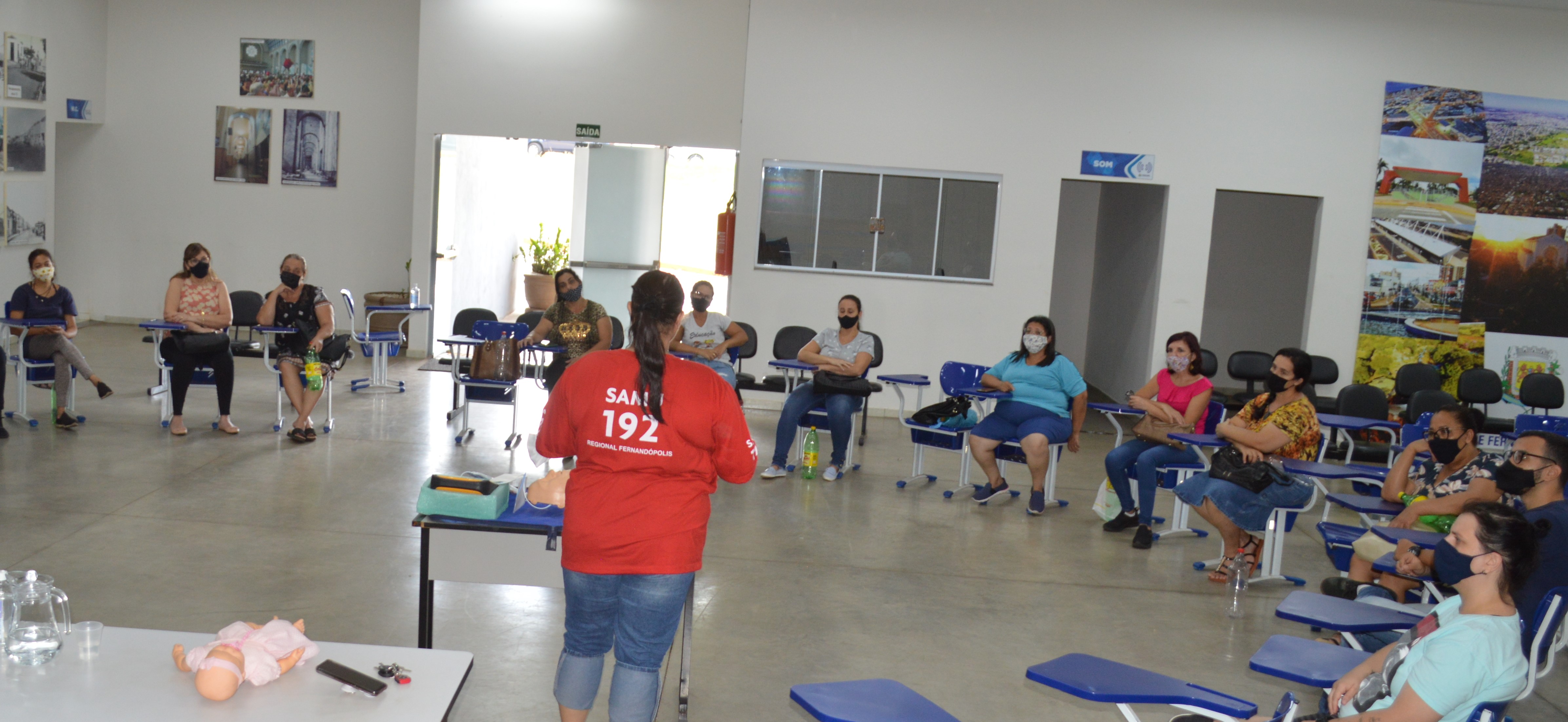 Foram selecionados três funcionários de cada escola da Educação Infantil ao Ensino Fundamental I e II, para participarem da capacitação pela enfermeira do SAMU, Laís Milena Colagrossi Franco Campus.