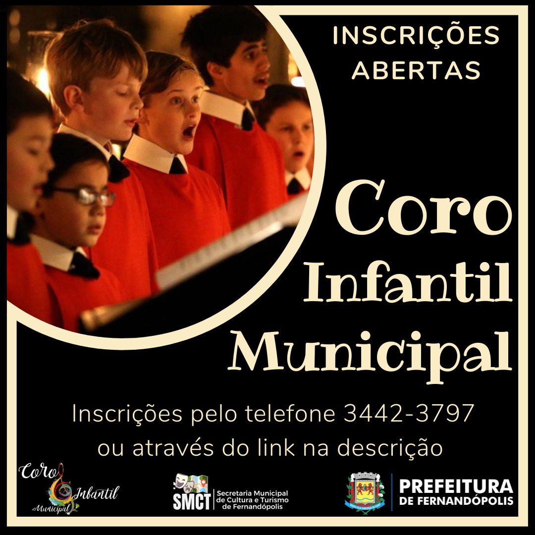 A Secretaria Municipal de Cultura se prepara para retomar as atividades do Coro Infantil Municipal. As vagas são oferecidas para crianças de 07 a 12 anos.