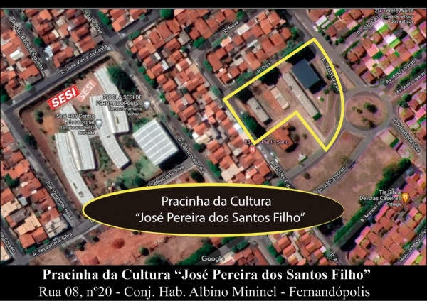 A “Pracinha da Cultura” está localizada na Rua 08 – nº 20, conjunto Habitacional Albino Mininel.
