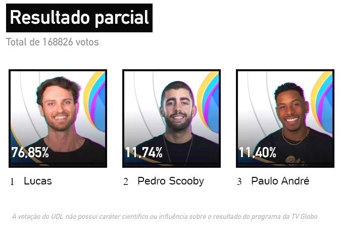 Parcial de enquete do Portal UOL às 16h12 desta terça - Foto: Reprodução/Instagram @bbb e Playplus)