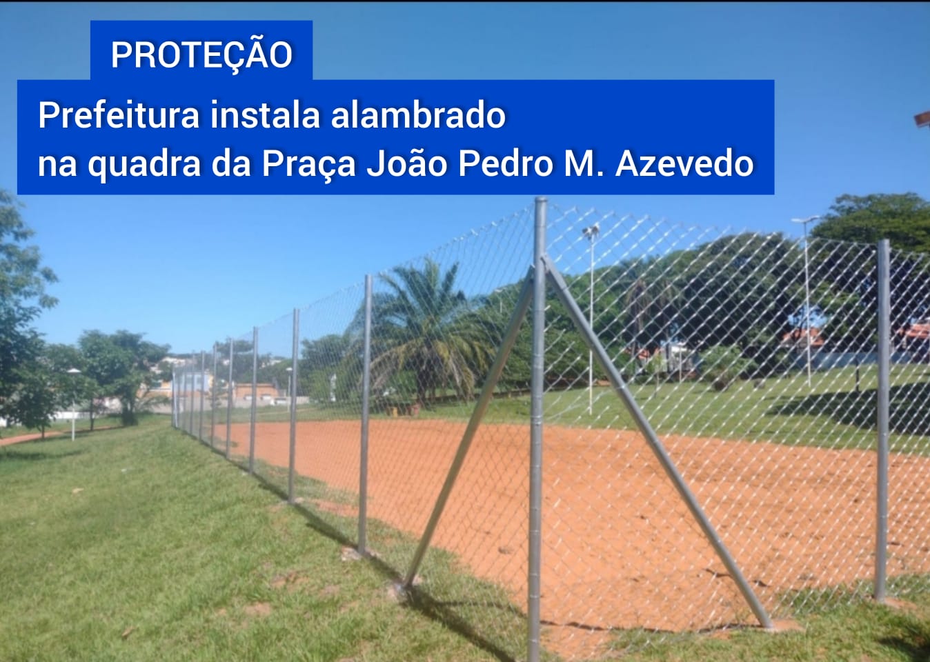 A Prefeitura de Fernandópolis finalizou nesta semana a instalação de um alambrado na quadra de areia da praça ‘João Pedro Moreira de Azevedo’, que fica ao lado da unidade UPA24h. O espaço público é um dos mais frequentados do município, recebendo inclusive várias famílias que realizam piqueniques no local e muitas crianças utilizam a quadra para as mais variadas brincadeiras, além é claro das atividades esportivas que ocorrem no local.
