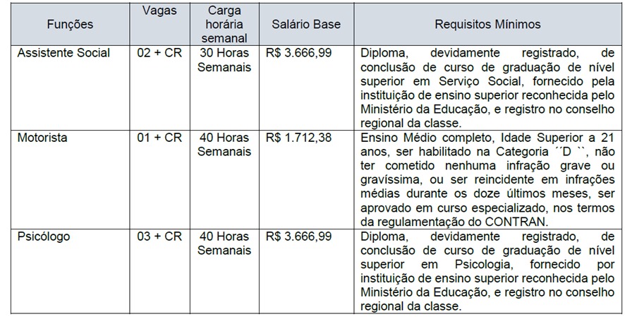 Assistente Social, Psicólogo e Motorista serão contratados temporariamente