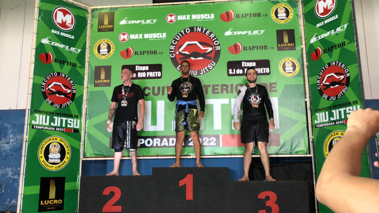 No pódio: Jumar Dias, da equipe de Fernandópolis, campeão, é graduado faixa azul