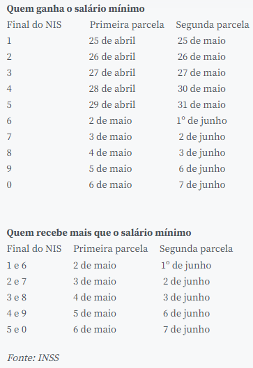 Confira o calendário de pagamento: