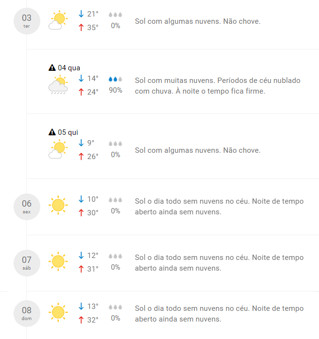 Confira a previsão completa para o restante da semana: