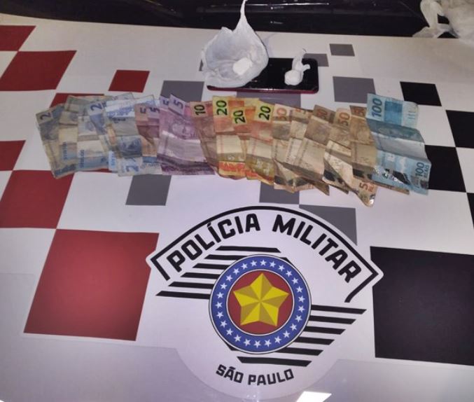 Com o suspeito, os policiais encontraram uma porção de cocaína, R$ 460 em dinheiro além de um celular possivelmente utilizado no tráfico dos entorpecentes.