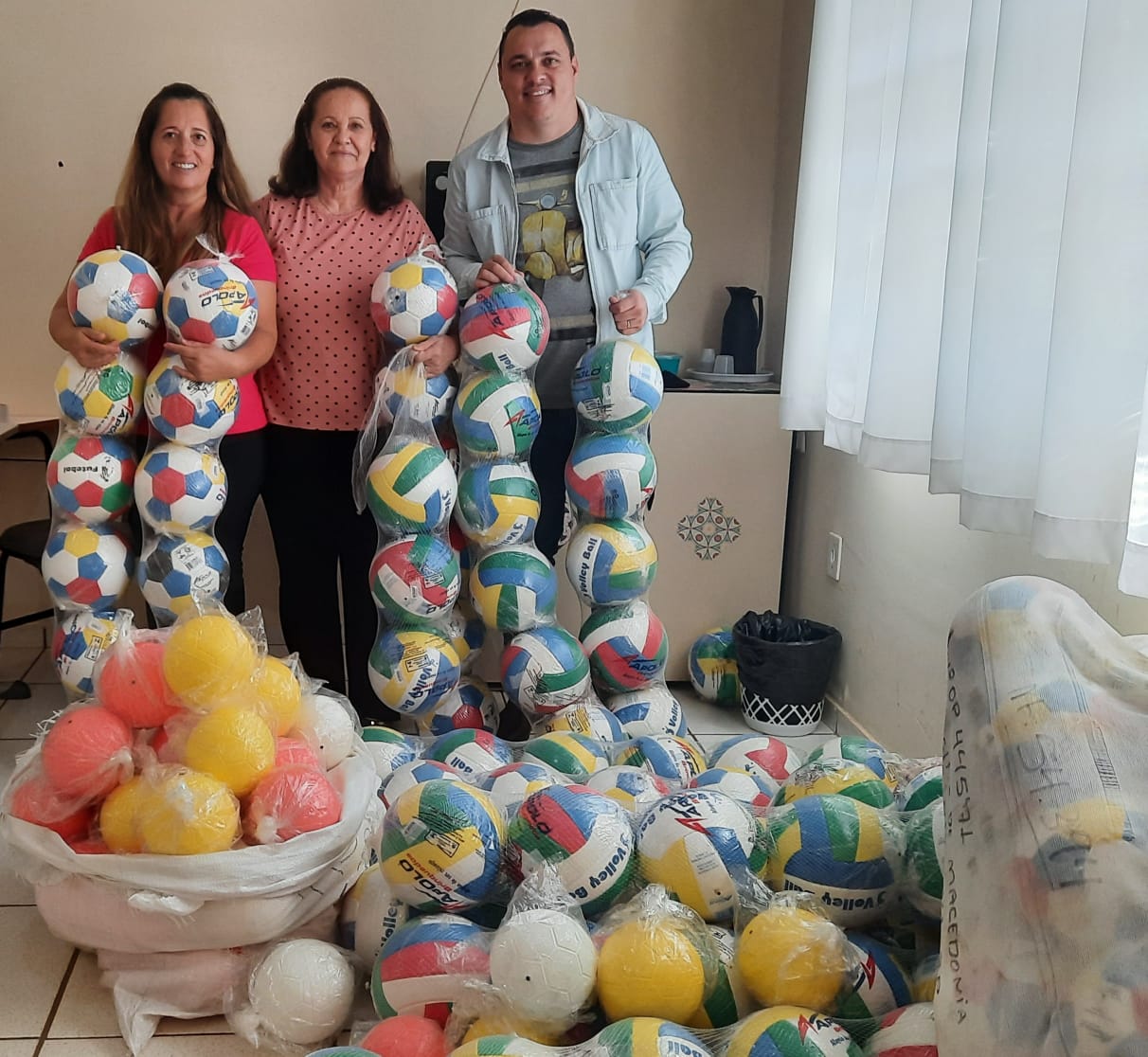 A rede municipal de ensino recebeu mais de 150 bolas e outros materiais esportivos destinados aos seus alunos