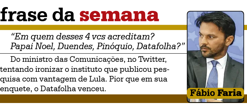 Crescimento de cinco pontos de Lula, de um ponto de Bolsonaro e estabilização dos demais candidatos. Eis o constatado em pesquisa eleitoral do Datafolha, divulgada na quinta, 26, a primeira desde a saída de Sérgio Moro e de João Doria. O petista surgiu com 48% e o atual presidente com 27% (diferença de 21% - na anterior, em março, era de 16% -). Ciro Gomes tem 7%, e André Janones e Simone Tebet 2%. Brancos e nulos somam 7% e outros 4% estão indecisos. A pesquisa foi realizada nos dias 25 e 26, com 2.556 entrevistas em 181 municípios e está registrada no TSE sob nºBR-05166/2022.