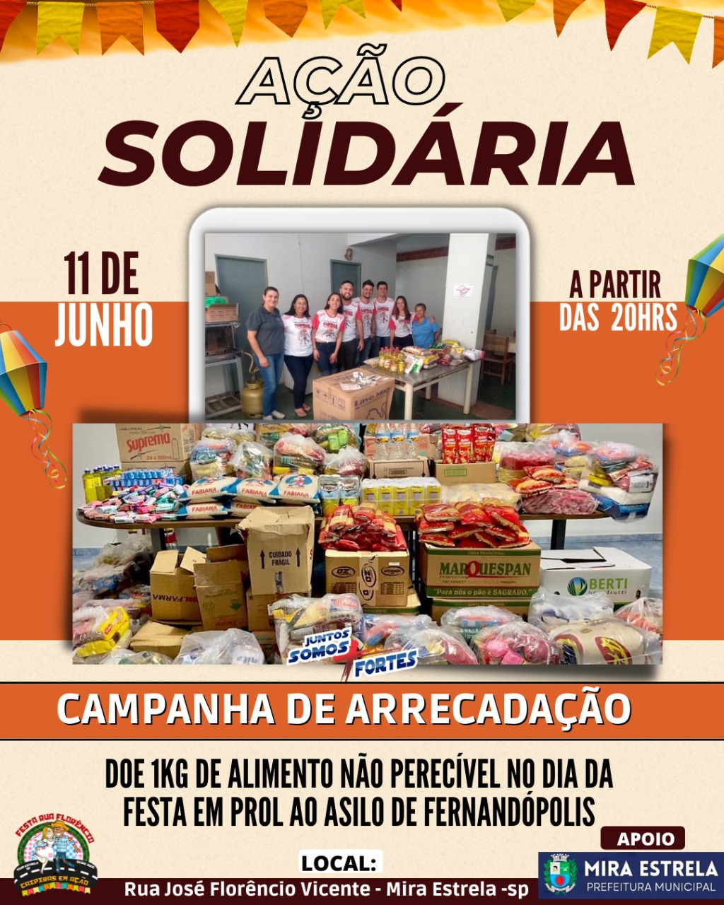No próximo dia 11 de junho, em Mira Estrela, município localizado a 37 quilômetros de Fernandópolis, será realizada a 15ª edição da Festa Junina da Rua Florêncio. Após dois anos, o evento voltará a ser realizado de forma presencial e contará com a distribuição gratuita de pipoca, quentão, achocolatado, bolo, entre outros quitutes