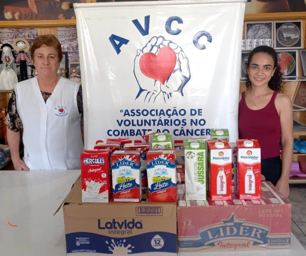 Melissa aproveitou a oportunidade para arrecadar leite. E assim fez. Conseguiu coletar 86 litros de leite que foram doados, na última terça-feira, para a AVCC – Associação de Voluntários no Combate ao Câncer – de Fernandópolis.