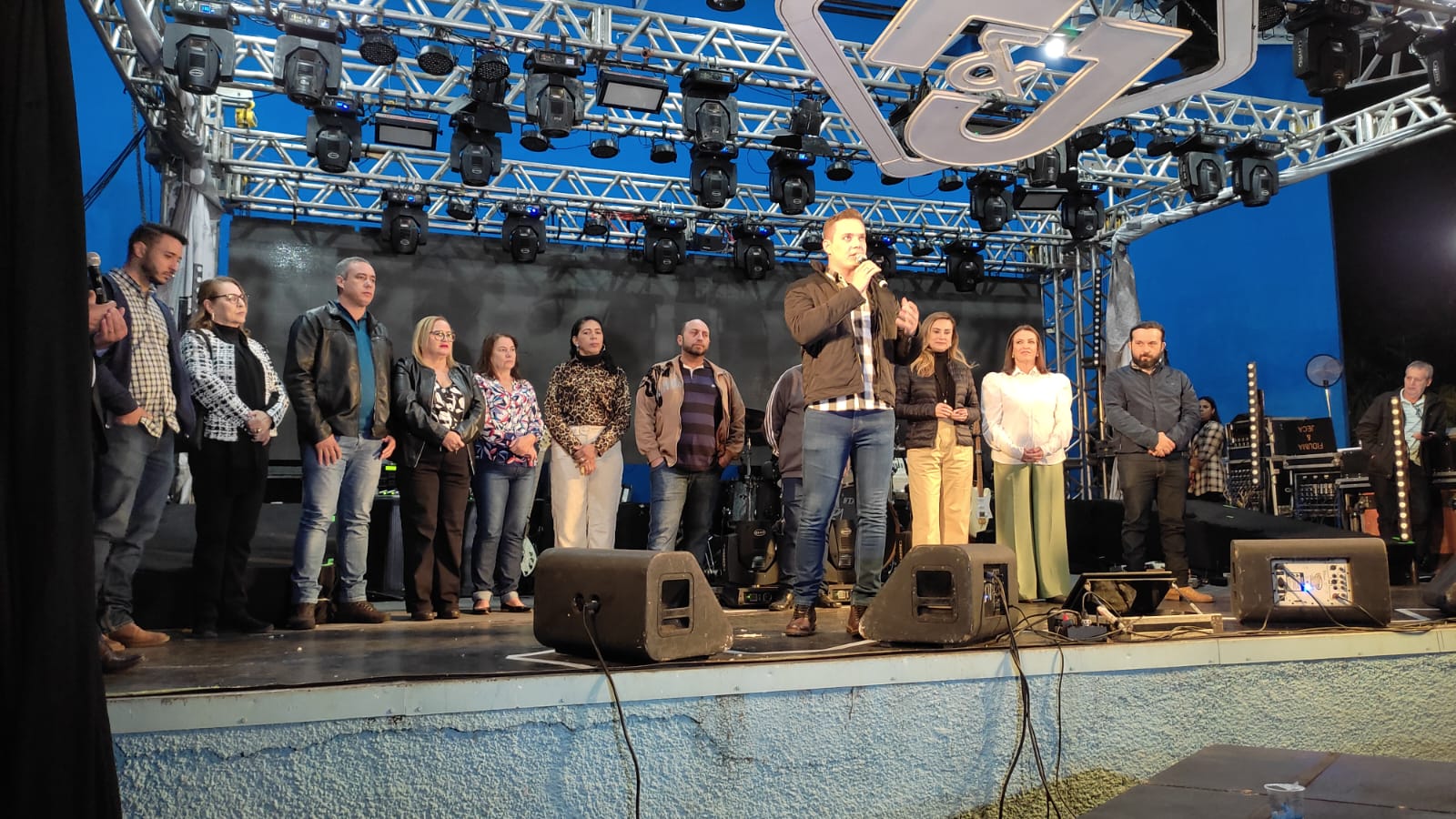 Ao lado do prefeito, Reginaldo Marcomini e da sua vice-prefeita Vanja Sabino Reis e autoridades presentes, destacou-se a presença da Deputada Estadual Analice Fernandes; Mara Amaral, assessora do deputado estadual Itamar Borges.