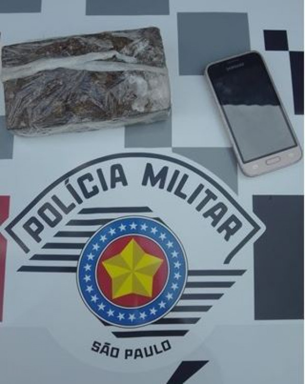 Além da droga, os policiais também apreenderam um celular, possivelmente utilizado para o tráfico.