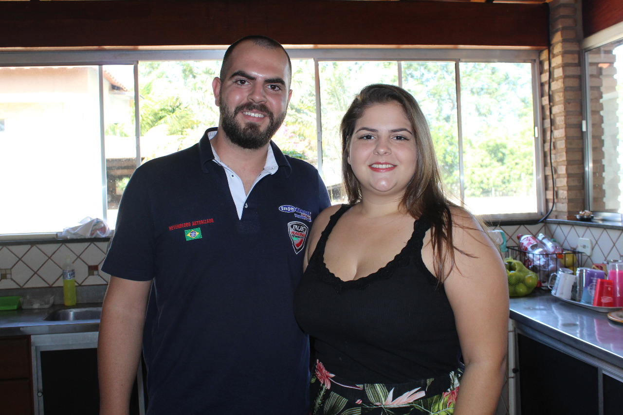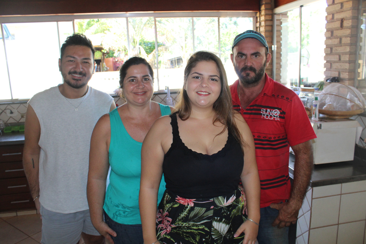 Julia com o amigo e assessor Thiago, a mãe, Sandra, e o pai, Júnior José, na chácara da família, no bairro Paraíso, em Fernandópolis