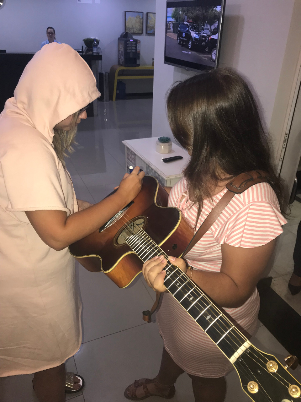 Julia ganhou autógrafo de Marília Mendonça em seu violão em um dos encontros com a eterna cantora, que nos deixou tão precocemente: "Gratidão e saudade"