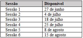 Cronograma para o download das sessões