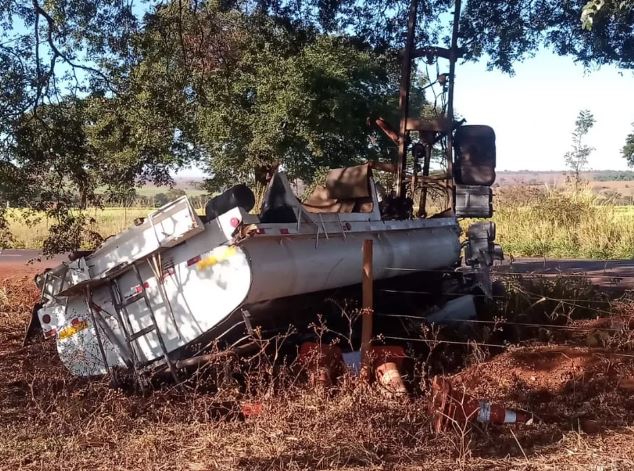 Na manhã desta terça-feira, 05, uma carreta carregada com álcool e gasolina tombou às margens da LMG-733, entre as cidades de Frutal e Planura.