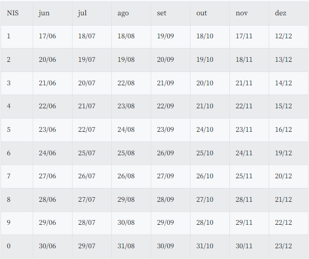 O valor mínimo é de R$ 400. As datas seguem o modelo do Bolsa Família, que pagava os beneficiários nos dez últimos dias úteis do mês.
