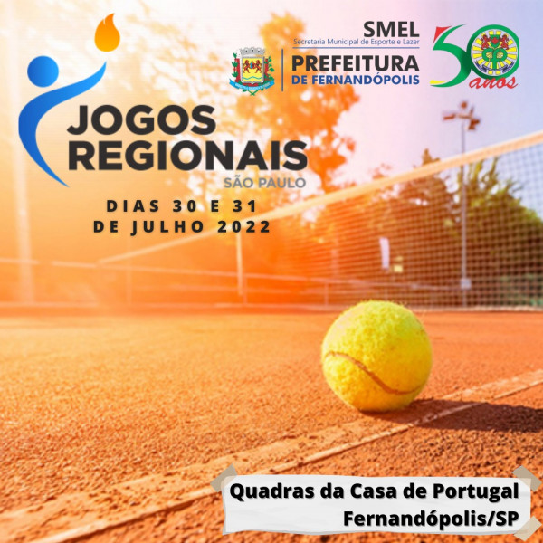 Depois de sediar a modalidade xadrez dos Jogos Regionais do Interior, Fernandópolis foi novamente escolhida para sediar mais uma modalidade esportiva. Com um dos maiores complexos de Tênis da região noroeste do estado de SP, o clube Casa de Portugal, com apoio da Prefeitura de Fernandópolis, sediará a modalidade com jogos já ocorrendo neste final de semana, dias 30 e 31, com entrada gratuita para o público.