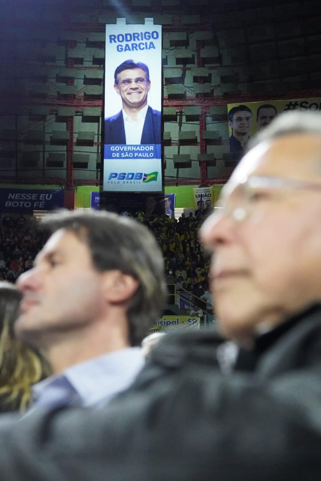 O governador Rodrigo Garcia oficializou sua candidatura ao Palácio dos Bandeirantes numa cerimônia emocionante. Ele abriu seu discurso chamando para o seu lado Tomás Covas, filho do saudoso prefeito da capital Bruno Covas. “Antes de começar quero prestar uma homenagem a alguém que marcou muito a nossa história. O Bruno representa valores, princípios e o futuro que queremos para São Paulo”, frisou.