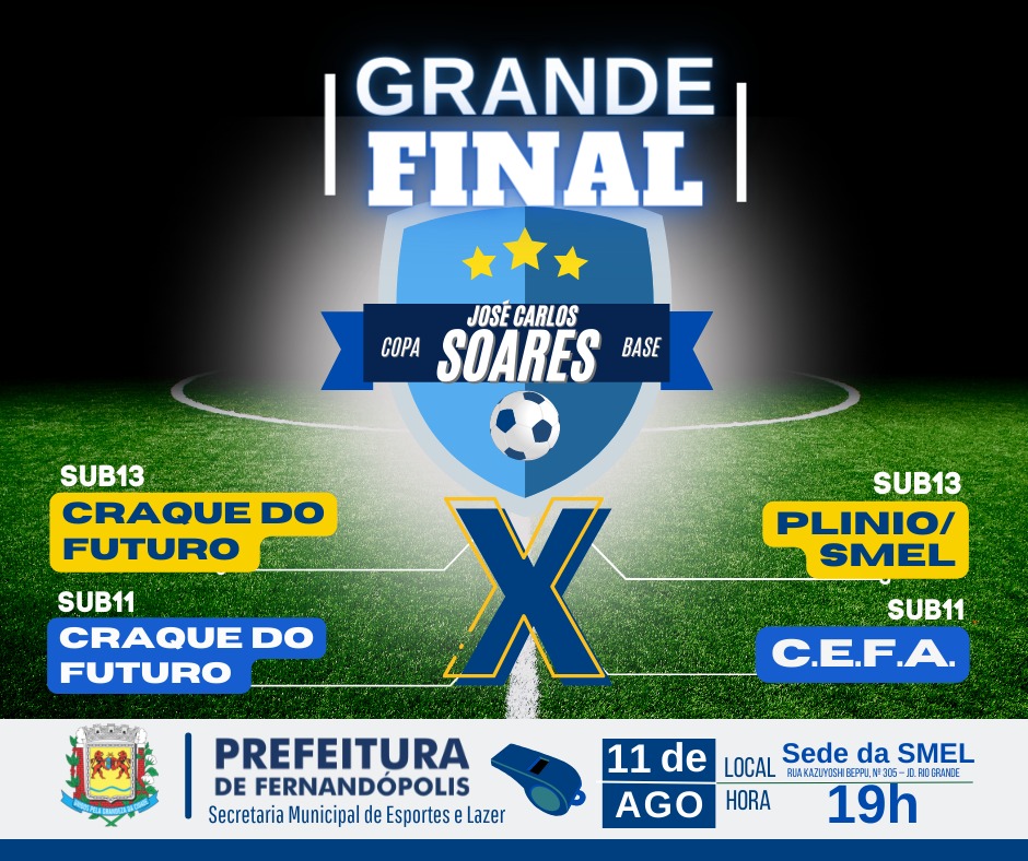 Acontece na noite desta quinta-feira, 11, no minicampo da SMEL – Secretaria Municipal de Esportes e Lazer, a grande final da 1ª Copa Soares de Futebol de Base. A competição movimentou nas últimas semanas as escolinhas de futebol da cidade, além de homenagear este grande ídolo dos torcedores fernandopolenses, ‘José Carlos Soares’.