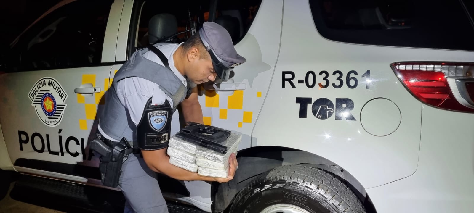 A Polícia Militar Rodoviária encontrou, nesta sexta-feira (19), tijolos de cocaína, porções de crack e armas escondidas em um fundo falso de um Fiat Toro na região de São José do Rio Preto (SP).