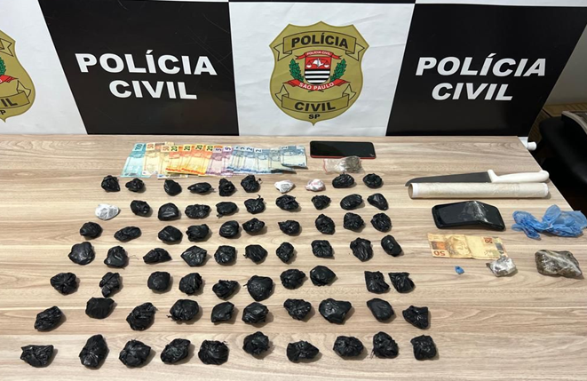 Foram apreendidos em poder dos autuados cerca de 810 gramas de maconha, 01 grama de cocaína, celulares, dinheiro e demais apetrechos utilizados no crime de tráfico.