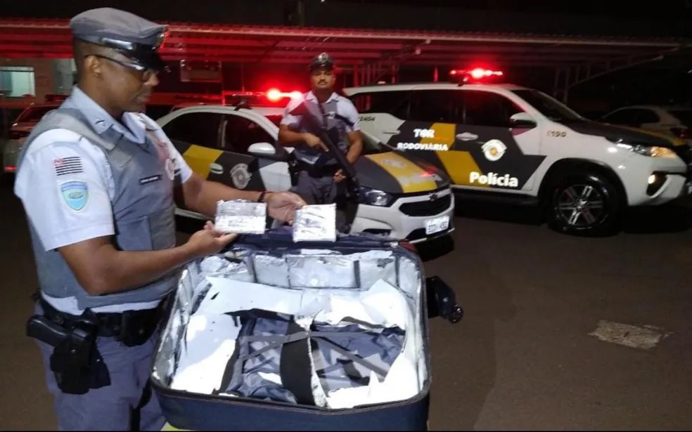 Um boliviano de 22 anos foi preso com mais de 20 tabletes de pasta base de cocaína dentro de uma mala, na noite de terça-feira (6), em Rubiácea (SP).