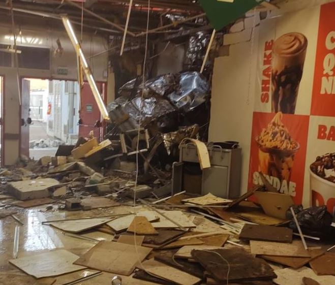 Após chegarem ao local, foi apurado preliminarmente pelos brigadistas que houve uma “explosão ambiental”, provocada por vazamento de gás de cozinha no restaurante Burger King. Uma parede ficou destruída e parte do teto cedeu.