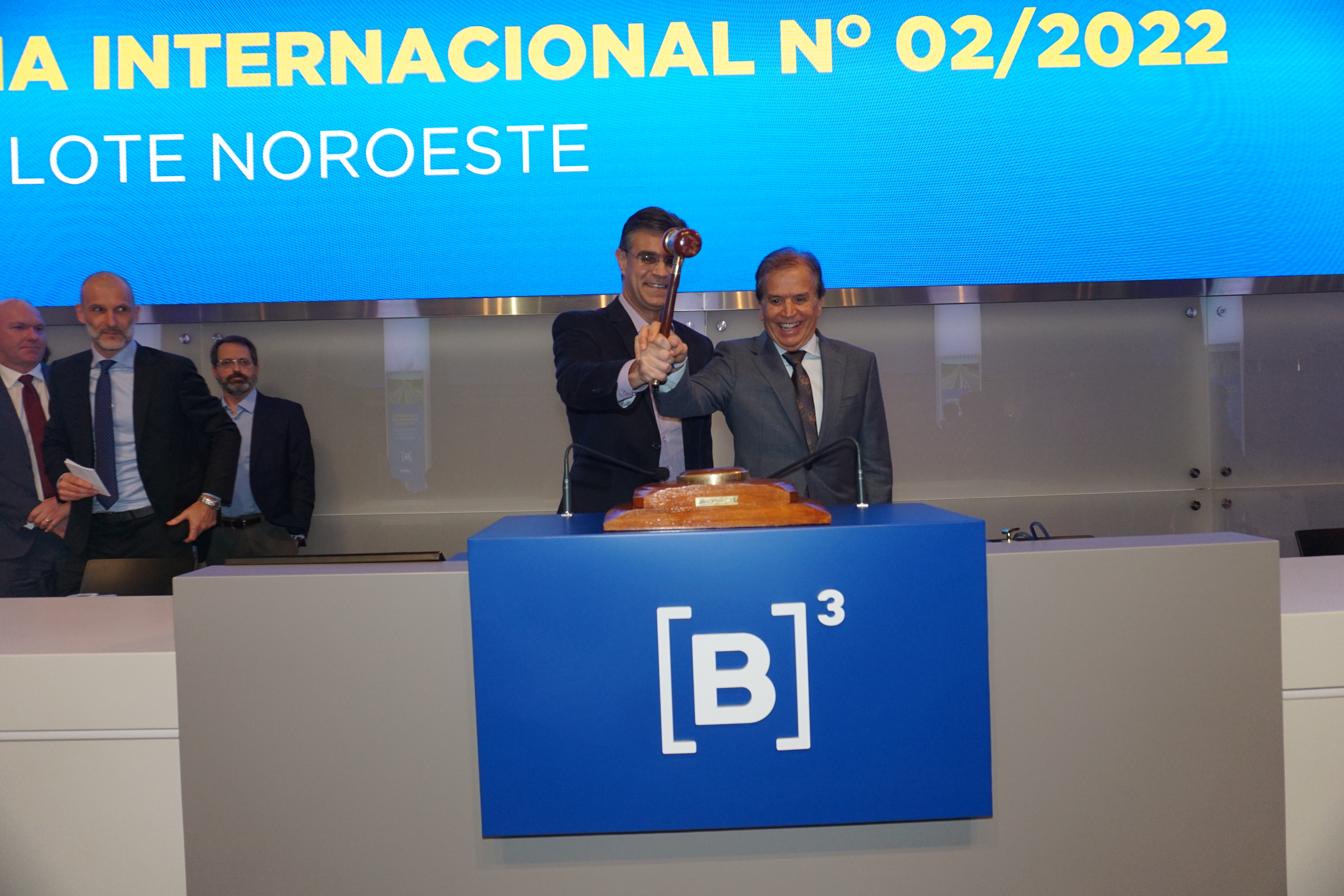 O governador Rodrigo Garcia acompanhou nesta quinta-feira (15) o leilão de concessão do Lote Noroeste. Com ágio de 16.151,20% sobre a outorga mínima, a EcoRodovias Concessões e Serviços apresentou, na sede da B3, a oferta vencedora de R$ 1,2 bilhão pela concessão do Lote Noroeste Paulista, composto por 600 quilômetros de rodovias que atravessam municípios das regiões de São José do Rio Preto, Araraquara, São Carlos e Barretos. Participaram do leilão 3 concorrentes.