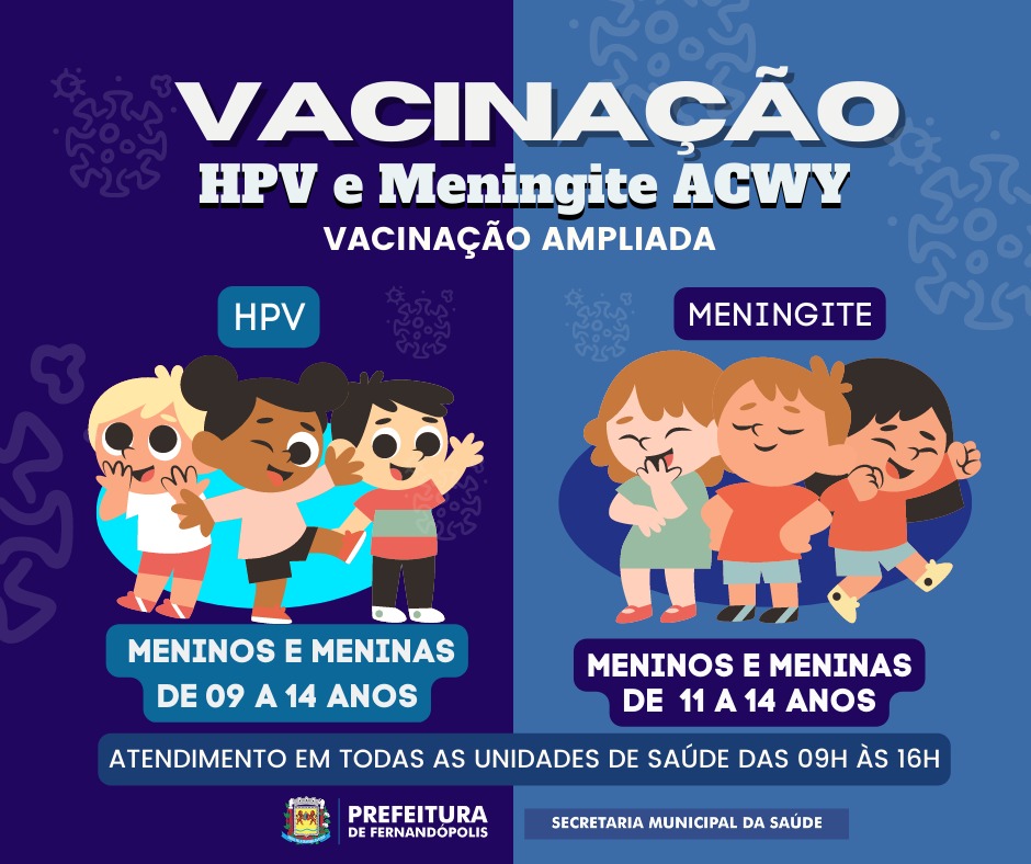 Além disso, adolescentes de 13 e 14 anos, de ambos os gêneros, também podem ser imunizados contra o meningococo ACWY, vacina antes voltada apenas à faixa etária de 11 a 12 anos. A ampliação da faixa etária tem como objetivo aumentar a cobertura vacinal de crianças e adolescentes para imunizantes de extrema importância a esses públicos.