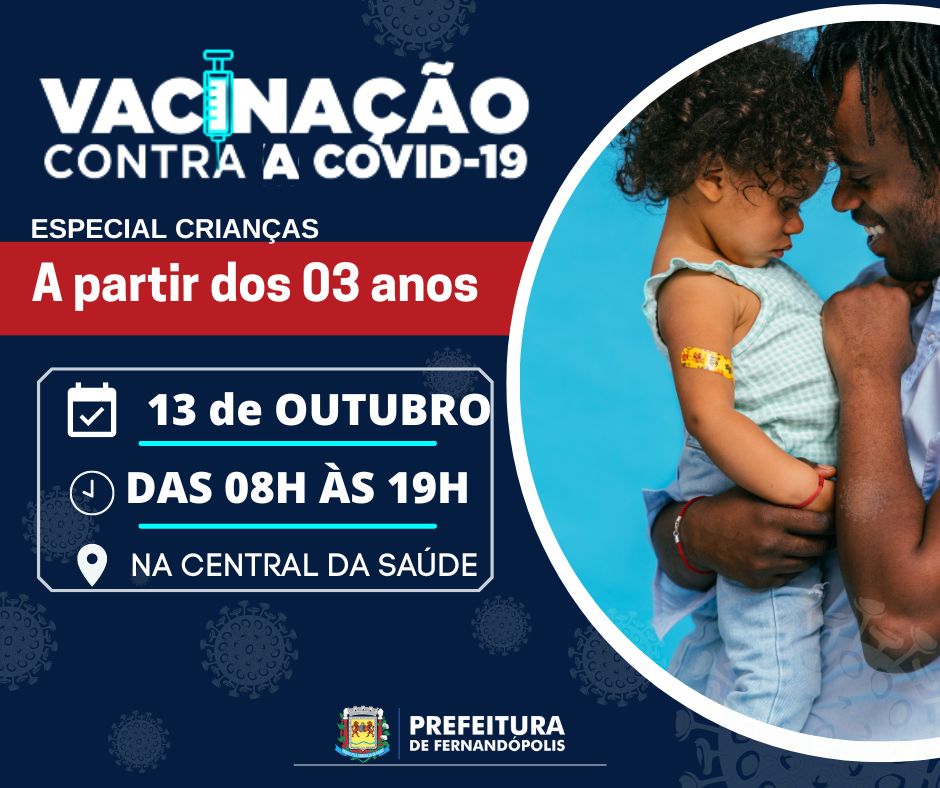 A Secretaria Municipal de Saúde orienta pais e responsáveis para que levem as crianças acima de 03 anos para serem vacinadas. A imunização é feita com a Coronavac, insumo permitido para esse público, e para receber a dose basta levar um documento pessoal da criança.