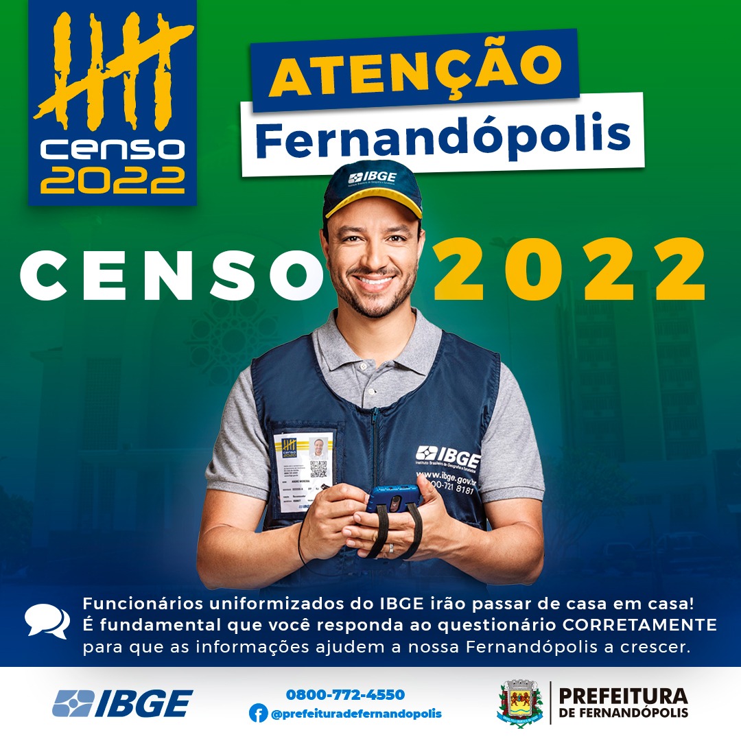 Um trabalho conjunto da Prefeitura de Fernandópolis, por meio das Secretarias Municipais de Comunicação, Saúde e Educação, estão auxiliando os grupos de rua do IBGE que trabalham diariamente na elaboração do Censo 2022. As equipes do Instituto Brasileiro de Geografia e Estatísticas percorrem todas as residências de Fernandópolis, áreas urbana e rural, com o objetivo de atualizar o censo populacional do município.