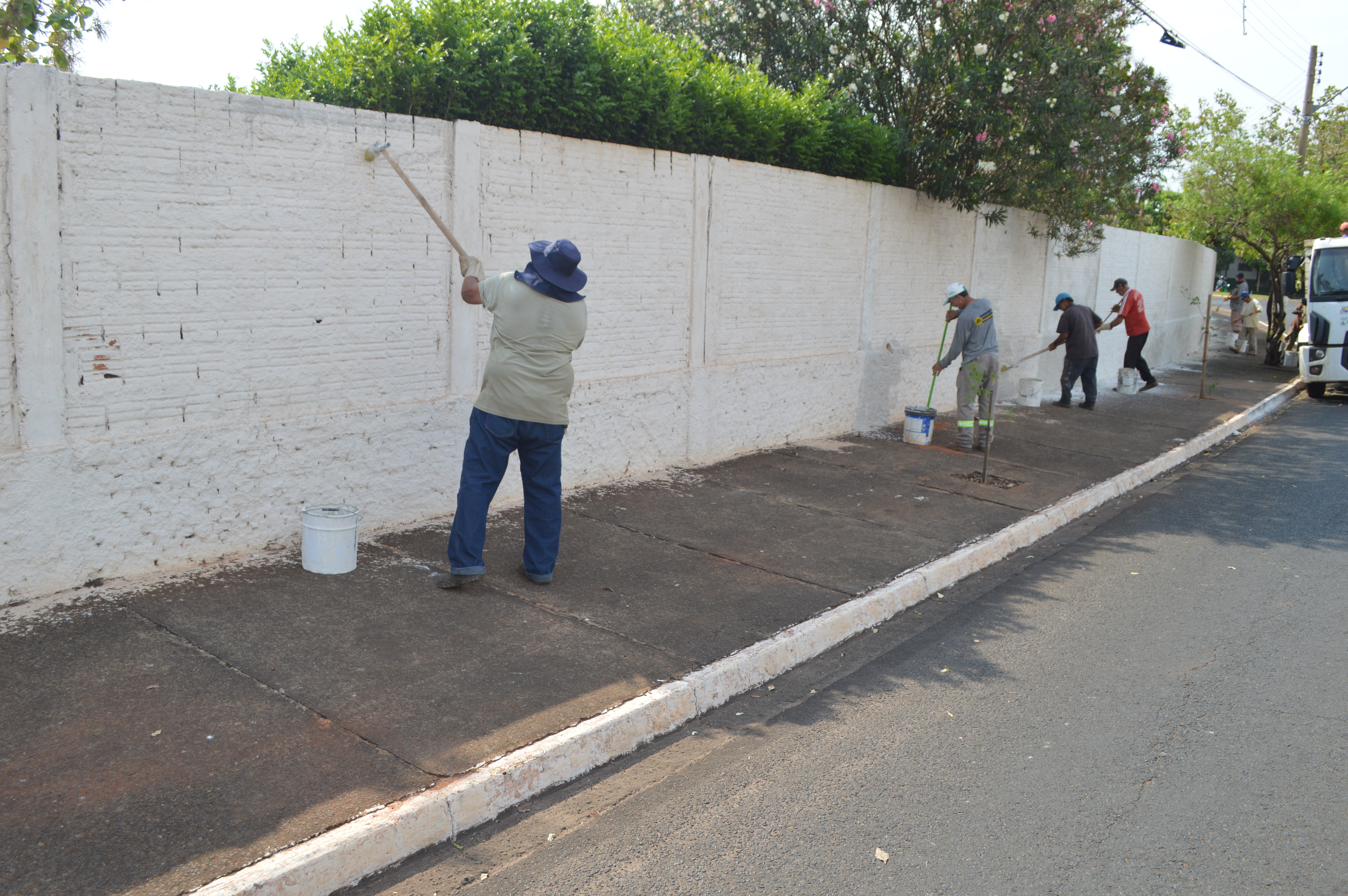 Trabalhadores da Prefeitura pintam os muros do Cemitério. Foto: Divulgação/Secom de Fernandópolis