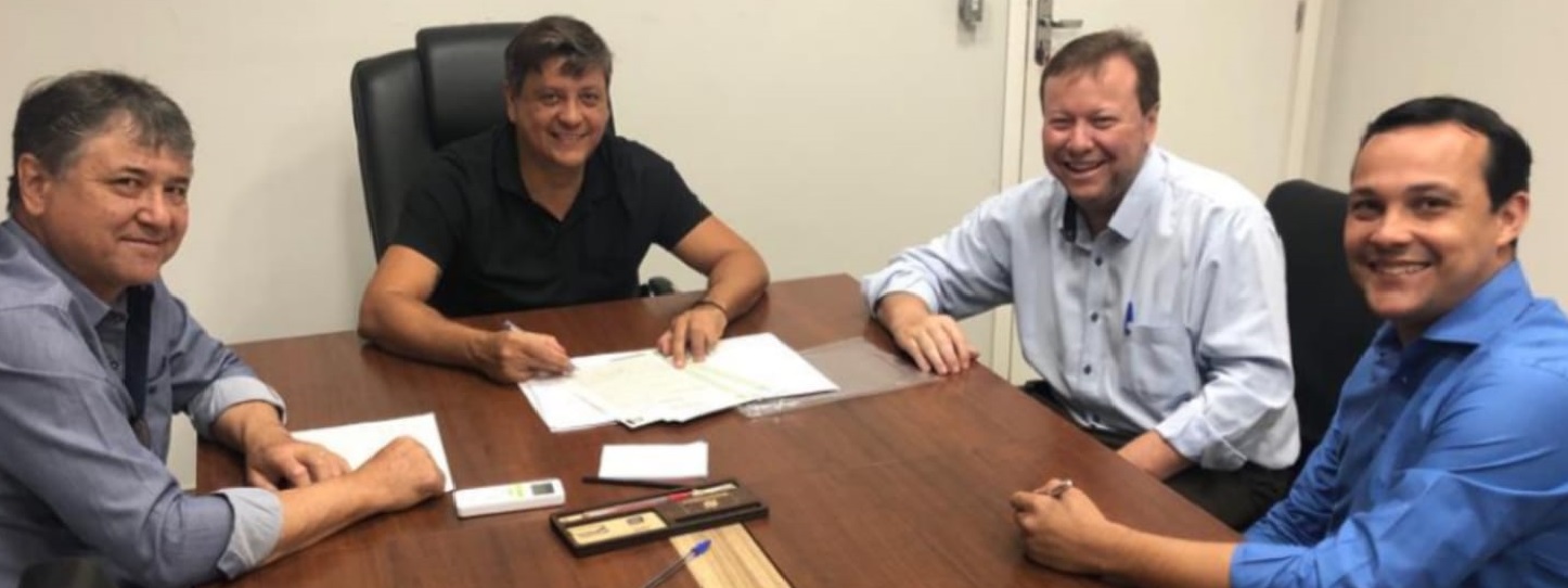 Kamyama, Pessuto e empresários da Prime Box. Foto: Divulgação/Secom de Fernandópolis