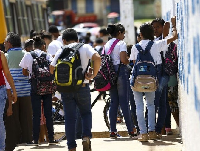 Alunos na entrada de escola paulista. Foto: Marcelo Camargo/Agência Brasil