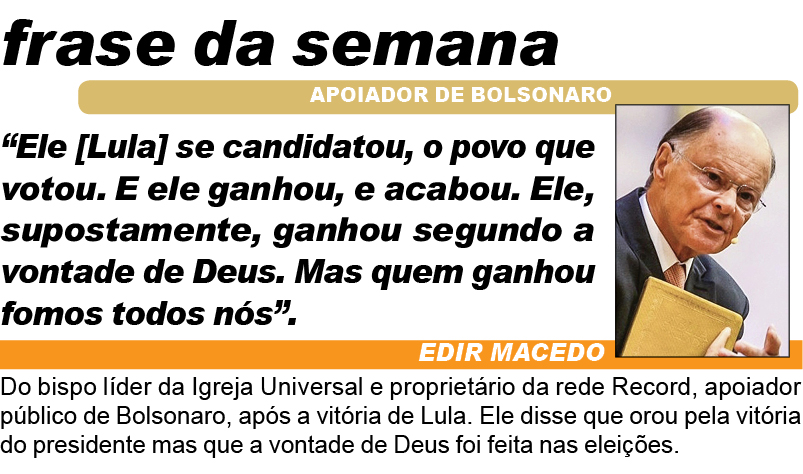 *Após a publicação desta coluna, tivemos ciência de matéria veiculada no site UOL onde o governador eleito Tarcísio de Freitas afirma que há espaço para nomes do governo Bolsonaro em sua gestão.